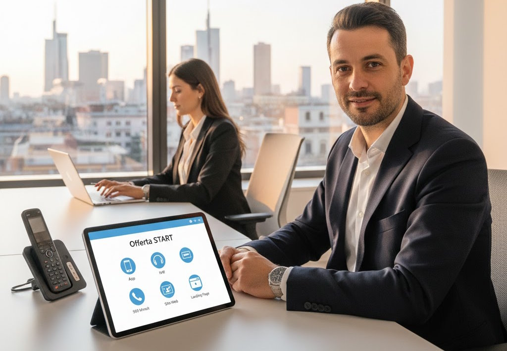 Utilizzo del centralino direttamente da telefono da scrivania, ideale per uffici e postazioni stabili. -