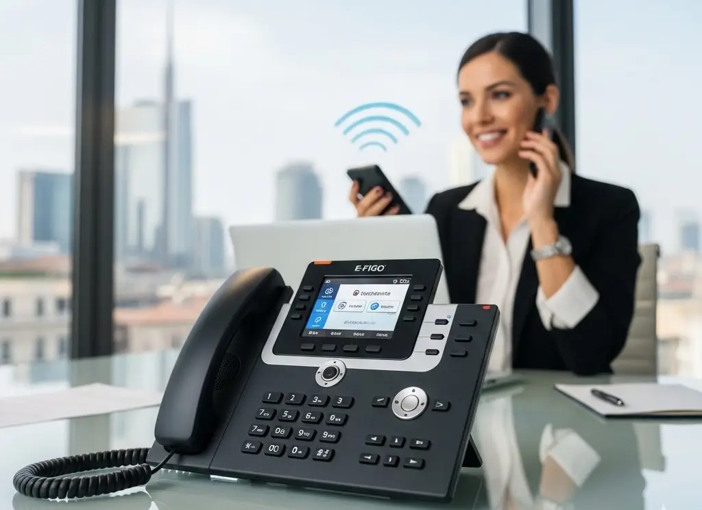 Il Centralino VoIP E-figo è una soluzione telefonica moderna e flessibile che consente di gestire le comunicazioni aziendali tramite connessione Internet, migliorando efficienza, mobilità e controllo dei costi.